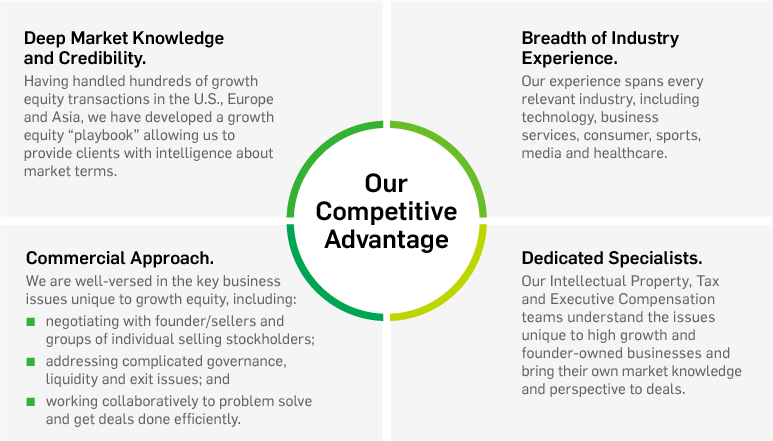 Weil’s Growth Equity practice advises financial sponsors and corporate VCs globally in making control and structured minority investments across a broad range of industries. Our team also has significant experience working with high growth companies on transactional matters and legal risk management.